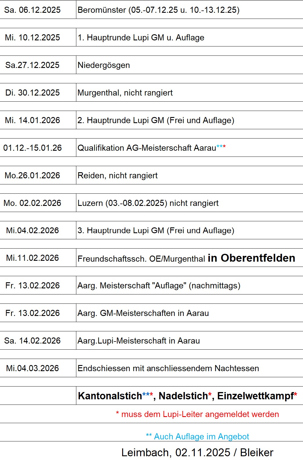 Programm Winter 2025/2026 Luftpistole